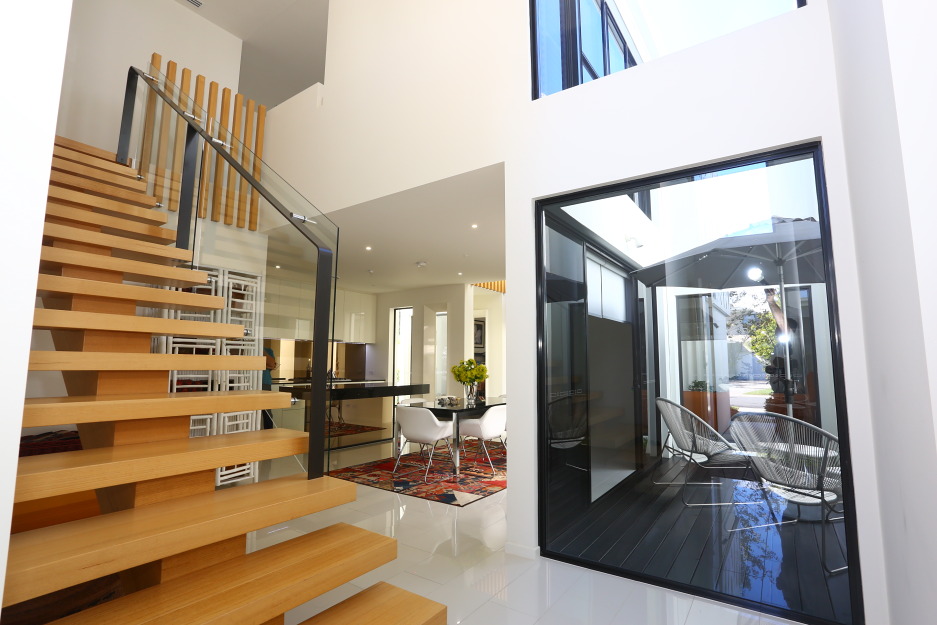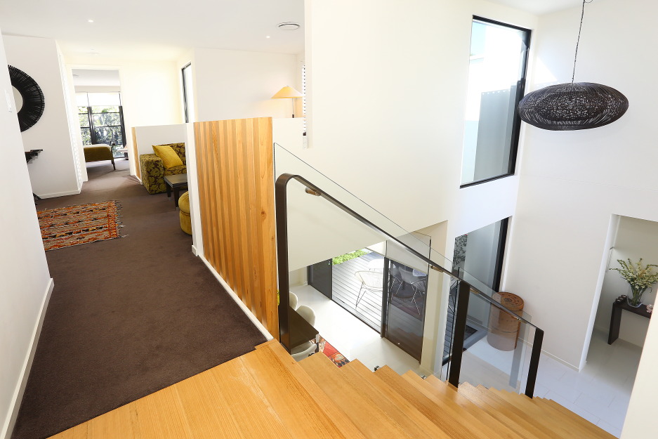 A sublime blonde coloured timber staircase leads you to the upper level of the home, where the large main bedroom is positioned, complete with a stunning designer ensuite bathroom and walk-in robe. This upper level is centered around the third living area which is good sized and suitable as a media space or parent’s retreat. Also on this level is the second designer bathroom along with a study nook and second and third bedrooms.