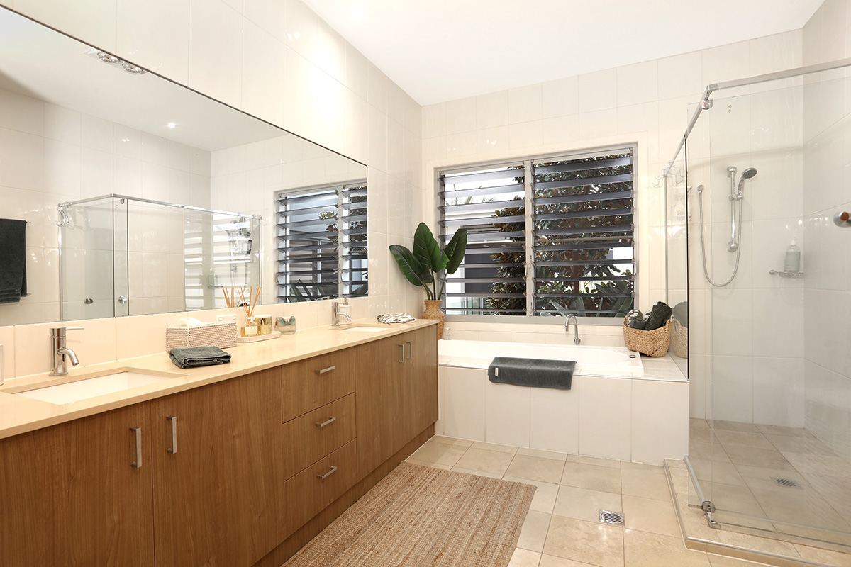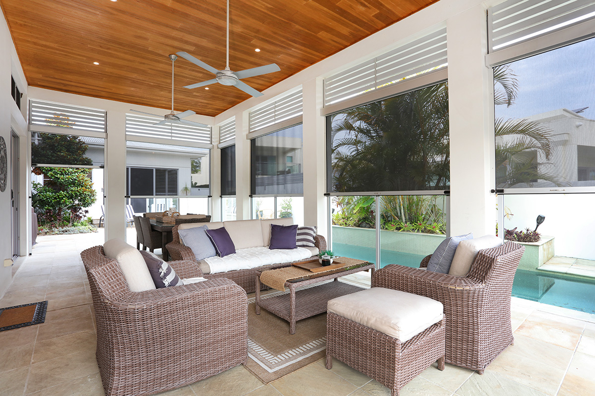The main outside entertainment area is fully covered and can be enclosed for privacy or inclement weather with pull-down blinds, or can be opened up to optimise the golf course panorama. It overlooks the pool and gardens, captures the prevailing breezes and flows through to the internal entertaining areas. Another timber deck area has you almost sitting out over the expansive lake, and is the perfect location for a glass of wine while watching the sun go down, or a morning coffee.