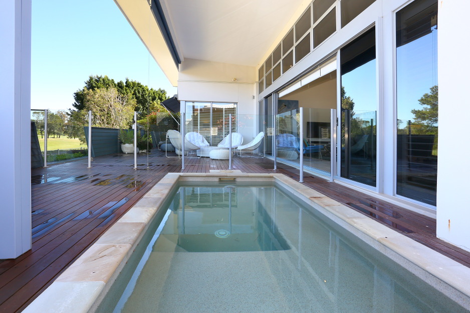 A study/office is positioned at the entrance of the property, large external entertaining deck, splash pool, side east facing courtyard and golf frontage lawned area complete the offering.