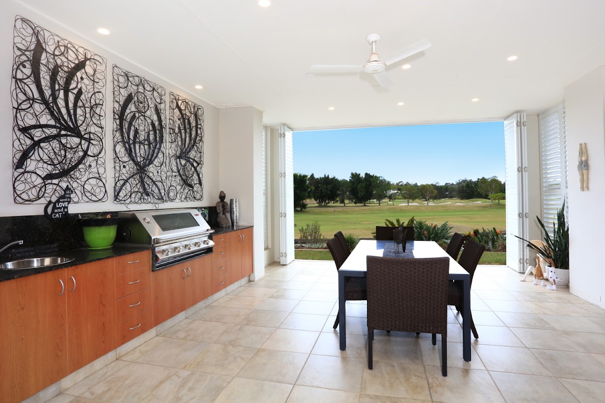 The external covered area is cleverly designed off the main kitchen /living area and has prime position facing the direct golf course, fitted out with full shutters for ease of convenience and comfort.