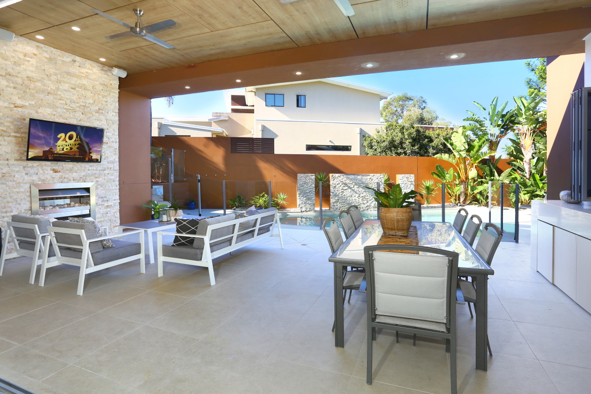 The covered alfresco area has direct entry from both living areas and is surrounded by the bbq and entertaining area complete with fireplace, all of which overlook the pool and the remaining lawned area.