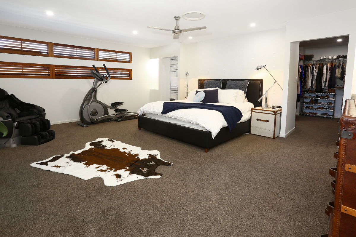 On the entry/street level you will find two of the bedrooms (the guest bedroom ensuited with a walk in robe), as well as the access stairway leading to the upper floor of the residence that solely houses the huge master bedroom suite.