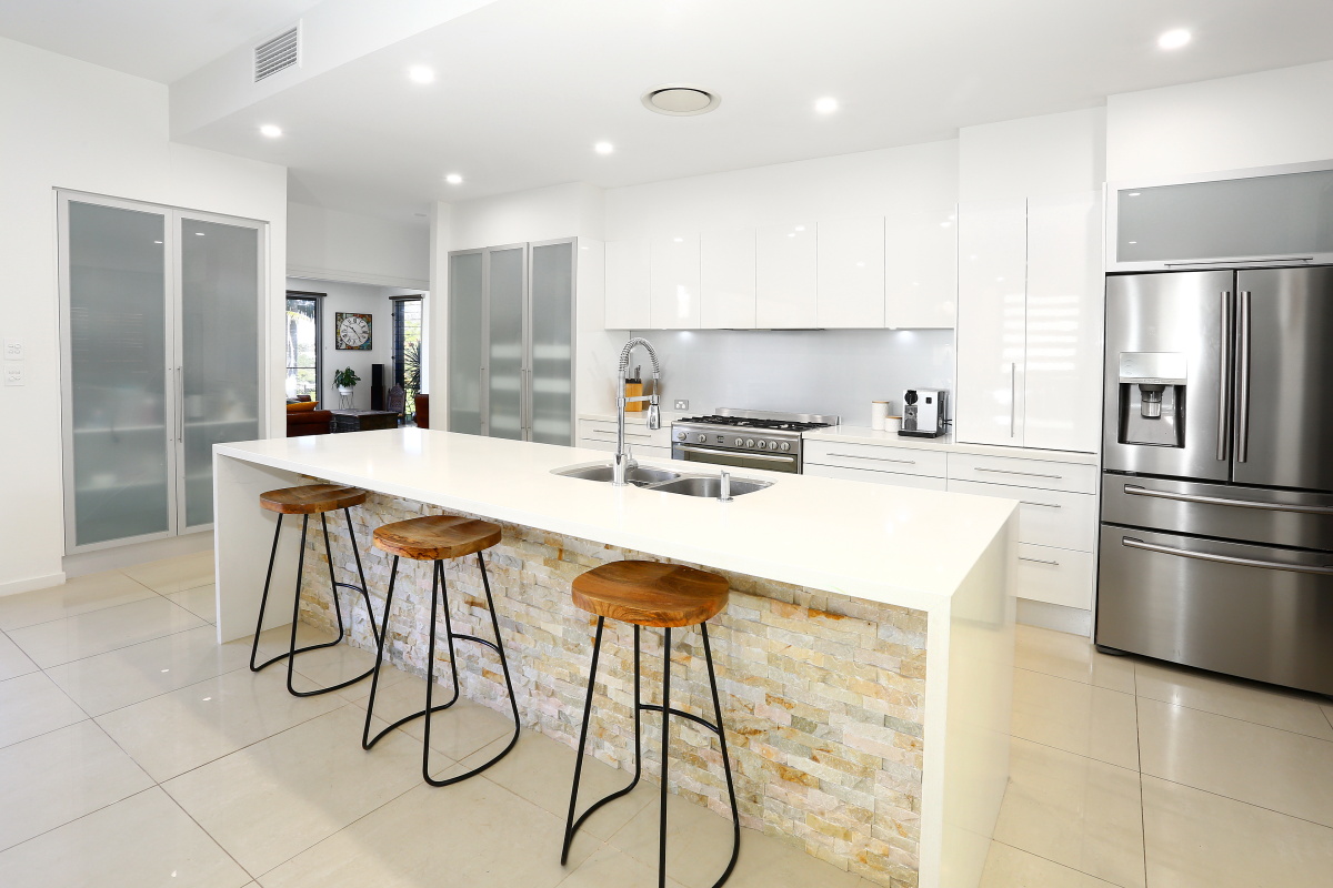 An impressive stone wall feature entry statement immediately opens up to the huge combined living areas creating a very spacious feel allowing the individual design of the home to really make an impression.